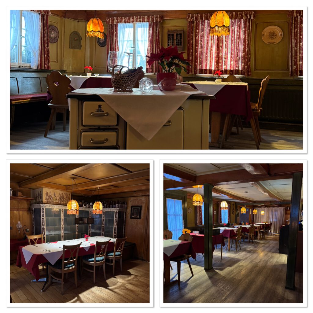Das Restaurant befindet sich in der historischen Bauernstube mit einer über 350-jährigen Tradition. Man kann dort noch wie in typischen Schwarzwaldhäusern den Hergottswinkel und Kachelöfen mit der Kunst entdecken. Besonders stolz sind wir auf unsere Hans-Thoma-Stube, die mit Bildern des zeitgenösischen Malers ausgestattet ist.